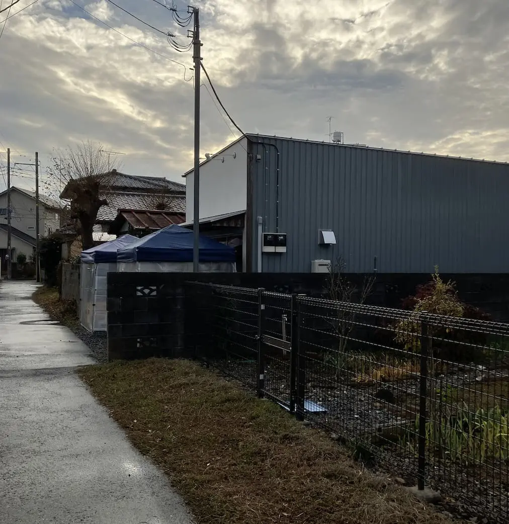 大工町の交差点から神應寺というお寺の脇の車も通れないほどの細い道を墓地沿いに歩くと住宅街に出ますが、雨風や直射日光を遮るタープテントが見えて来たらそこを目指しましょう。周囲でも比較的新しい建物がお目当ての元山町ブルワリーです。